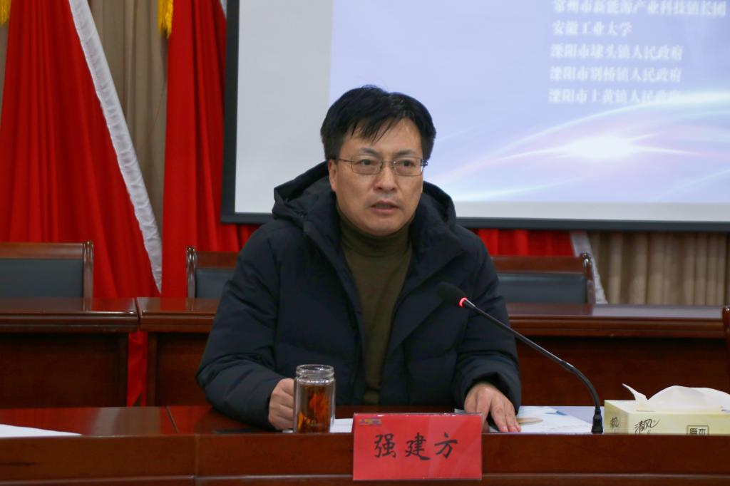 强建方对参会的领导、学者、嘉宾师生代表表示欢迎,他对上黄镇的人文历史、产业发展情况进行了介绍,他表示,上黄镇将全力服务保障企业校地院企牵手合作,以最高效率落实好签约的项目、达成的协议,不断完善基础配套工程,持续做优营商环境,提升上黄镇的科创发展活力。王芳对2023年溧阳市“两湖”创新区产学研交流会成功举办表示祝贺,她强调常州市新能源产业科技镇长团是省委人才办组织服务地方产业发展的专门团队,成员主要是来自省内外高校的教授和大院大所的专家,科技镇长团的专家将锚定常州市特色产业,为地方建设贡献力量。她希望各企业能把握机会,以此次交流活动为契机,进一步深化校企产学研合作,同时也希望各位学者、嘉宾给予溧阳更多关心、支持和帮助,与溧阳携起手来,注入产业转型更加澎湃的动力,开创科创溧阳更加美好的未来。钱付平对溧阳市上黄镇的热情接待、周到的组织安排表示感谢,他对安徽工业大学及学院情况进行了简要介绍,钱付平表示,学院将立足学校及专业优势,充分发挥地方产业发展的智囊作用,精准服务溧阳上黄镇等地区产业创新发展,让更多的创新成果在上黄等地落地转化。同时结合产业发展需求,精准对接毕业生就业创业等民生工程,实现多方互利共赢,共同发展。